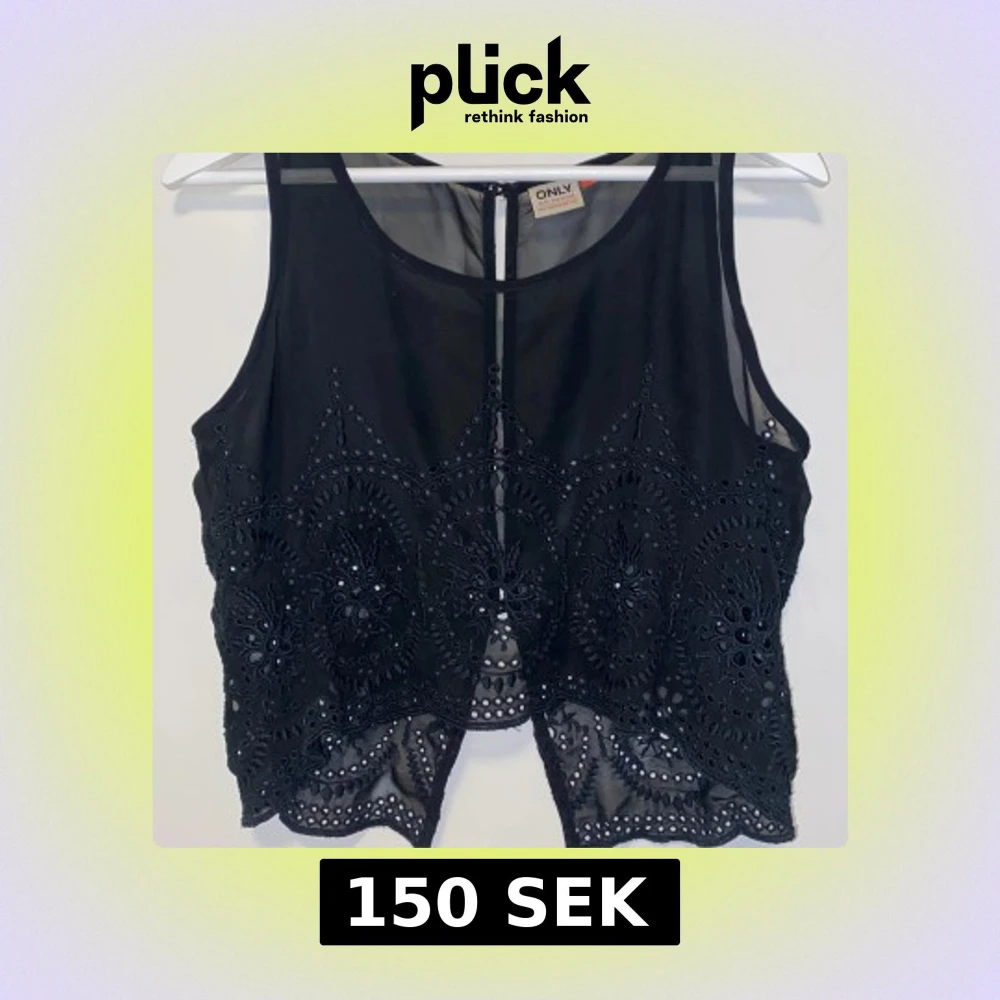 Svart linnetopp från ONLY med broderade detaljer och hålmönster. Toppen är ärmlös och har knappar i ryggen.
