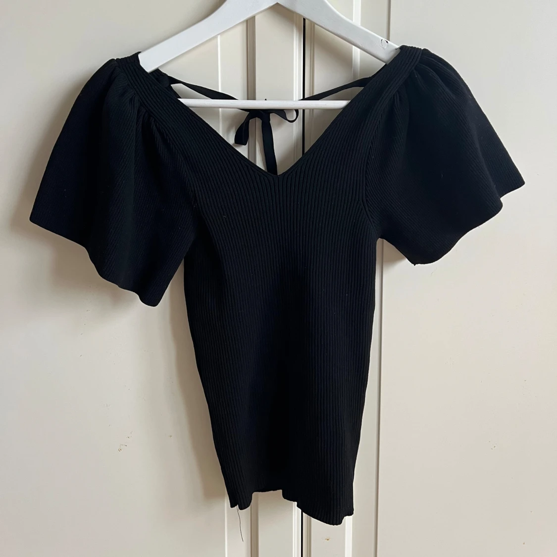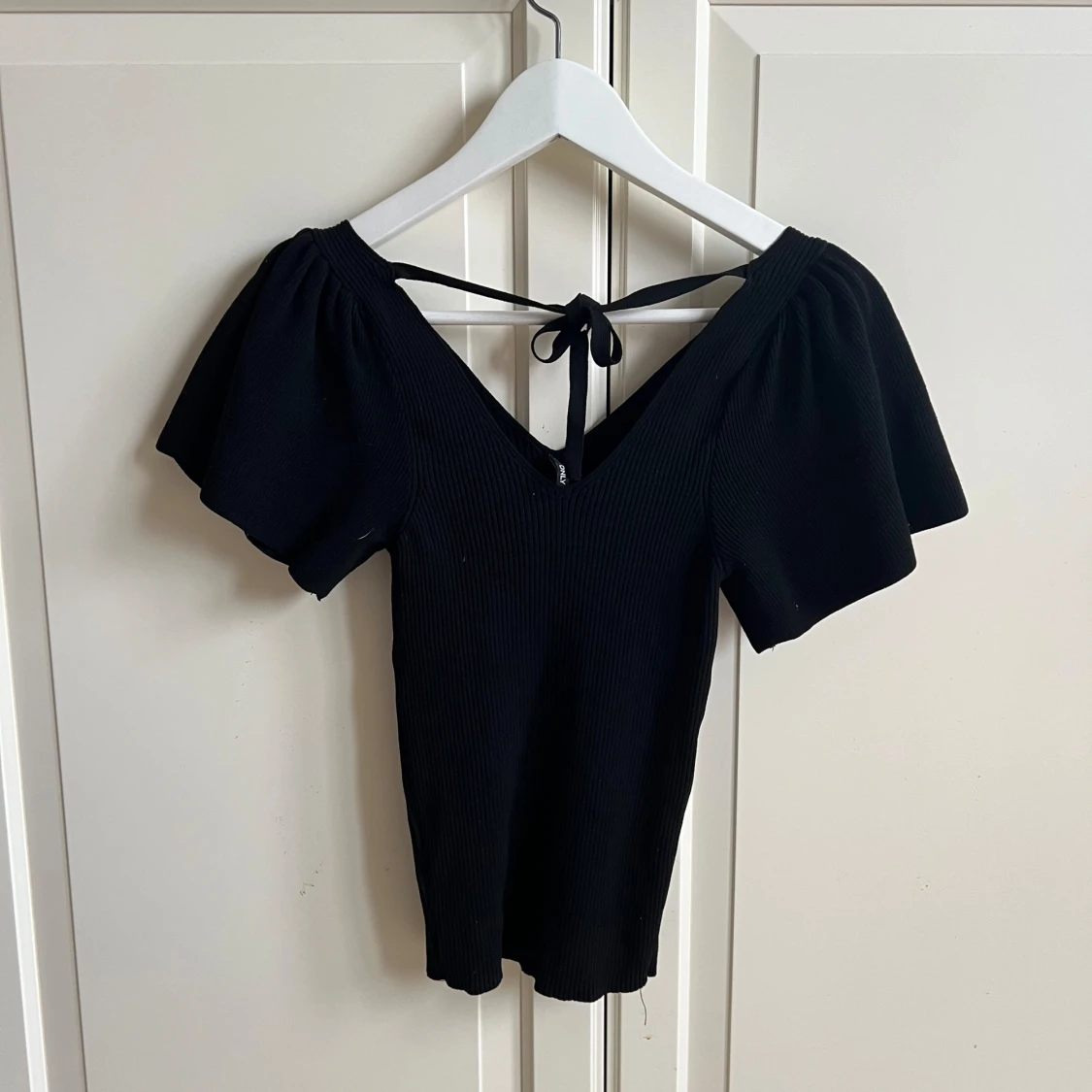 Svart topp från only med fina puffärmar och knytning baktill, använd 2 gånger, storlek xs men har mkt stretch.