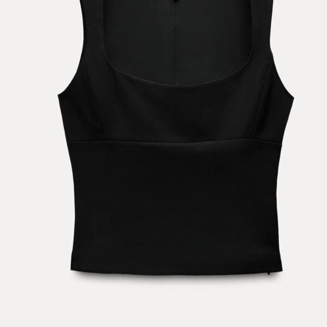 Snygg svart topp med fyrkantig urringning. Perfekt för en stilren look, passar bra till både jeans och kjol.
