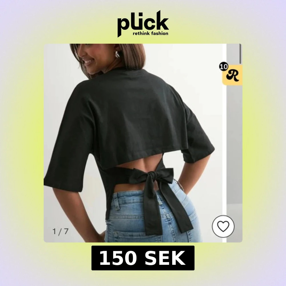 Snygg svart bolerotopp med öppen rygg och breda knytband som knyts i en rosett bak. Toppen har halvlånga ärmar och croppad passform, perfekt till höga jeans. Enkel och stilren design som sticker ut.