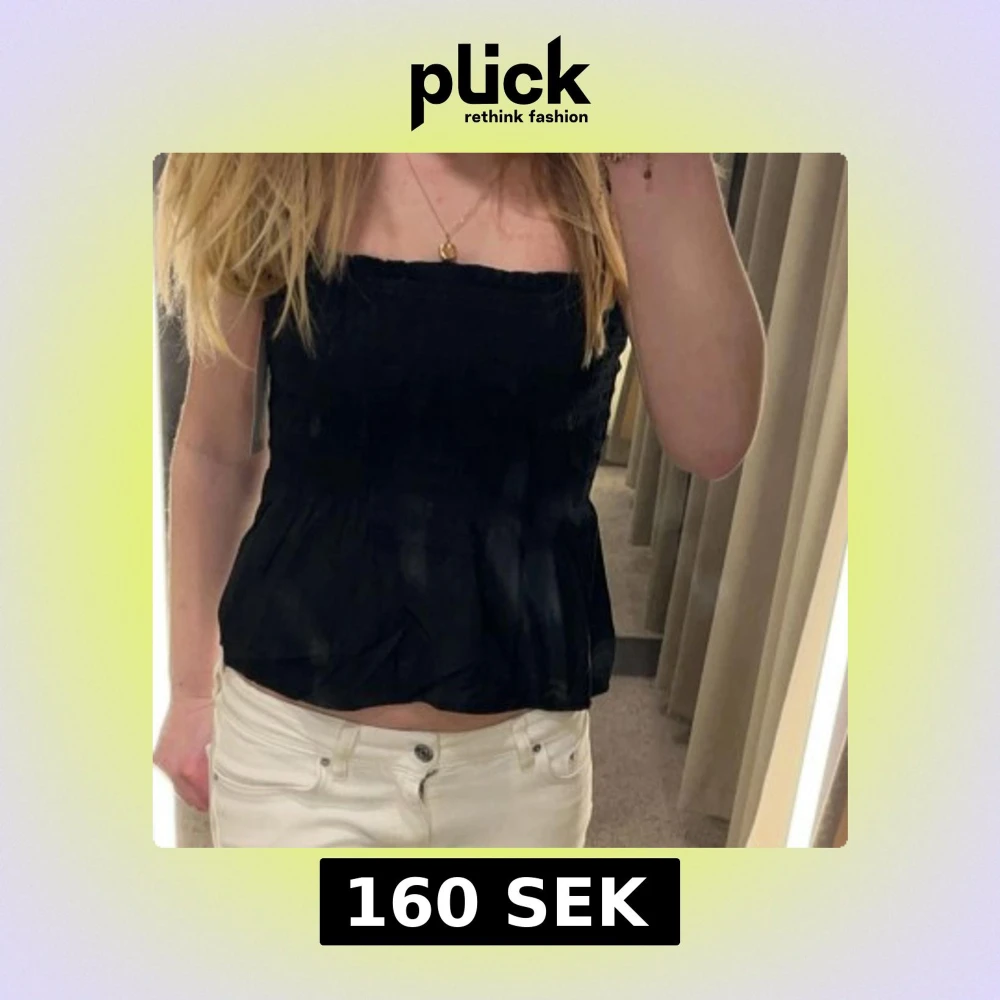 Säljer en svart topp med smockad överdel och volang nertill. Toppen har lite bredare axelband som knyts i rosetter på axlarna för en söt detalj. Använd 1-2 gånger endast!! Skriv om du har några frågor💕💕