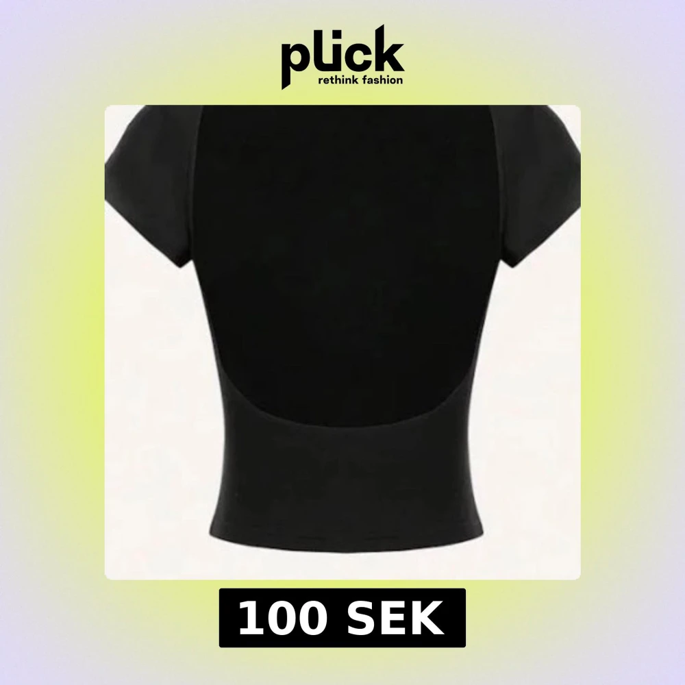 Svart, enkel topp från Gina Tricot i storlek M. Modellen har korta ärmar och en snygg djup urringning i ryggen. Ändast använd 1-2 gånger!