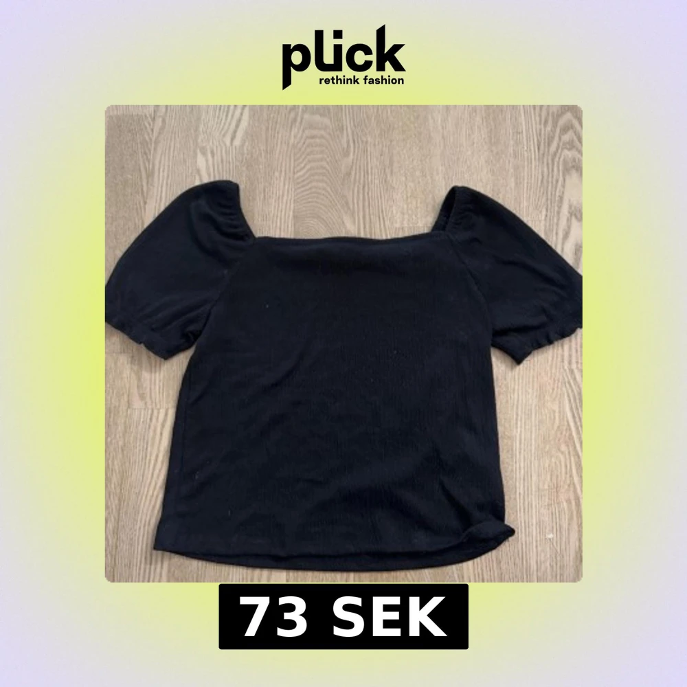 En svart topp från H&M med korta puffärmar och fyrkantig halsringning. Enkel att matcha med både jeans och kjol! Endast använd ett fåtal gånger