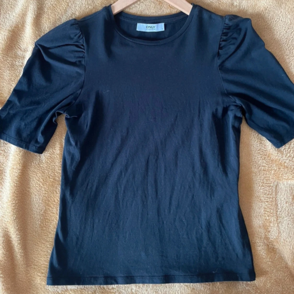 Svart topp från ONLY med rund halsringning och korta puffärmar. Enkel och stilren design som passar till många olika outfits. Tillverkad i mjukt material för en bekväm känsla.