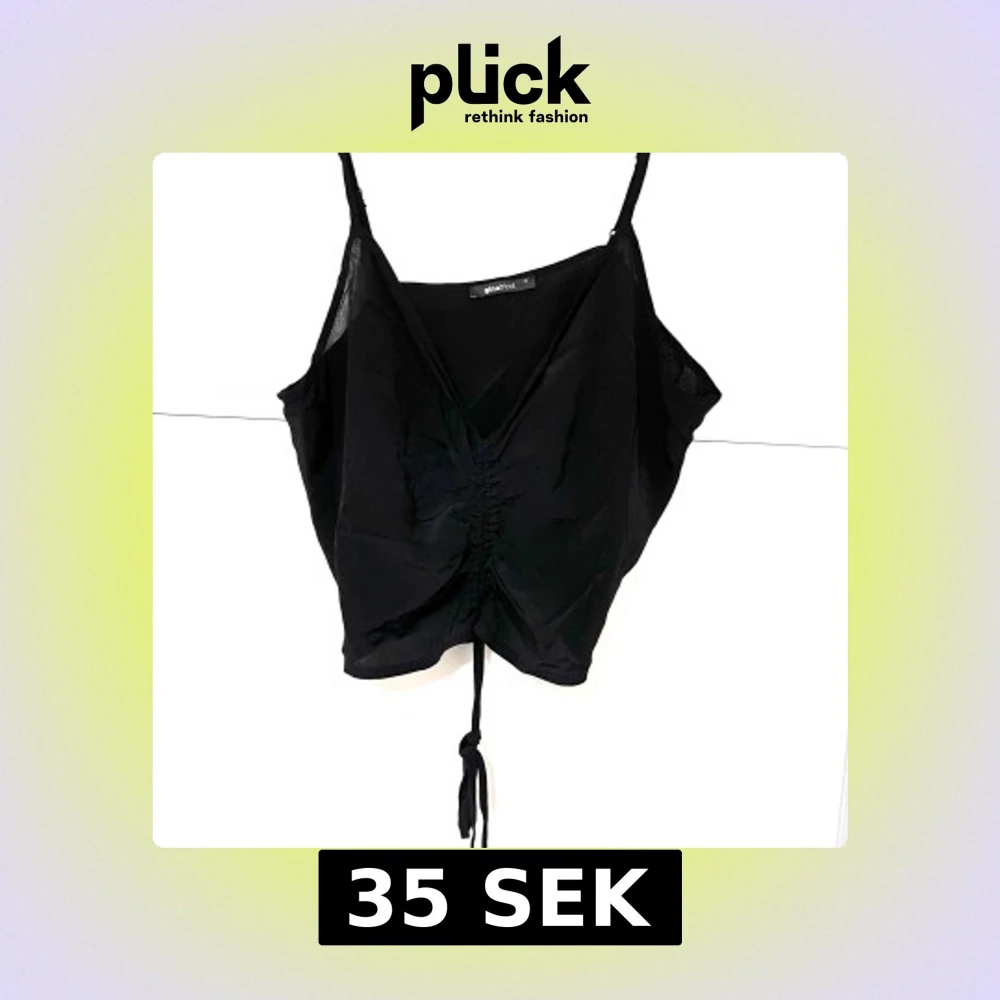 Svart topp med justerbara tunna axelband och snygg v-ringning. Toppen har snörning framtill, är lätt och luftig.
