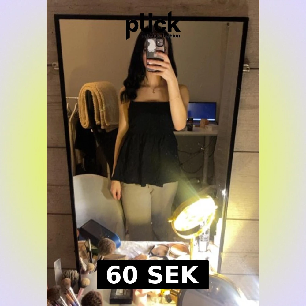 Säljer en svart topp med volang nedtill. Toppen perfekt för dig som gillar en enkel men ändå trendig look. XS