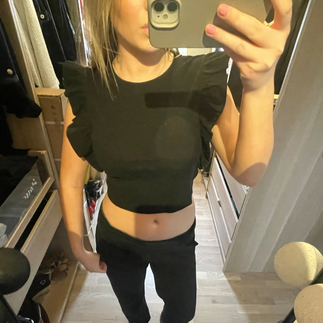 Svart topp med volang