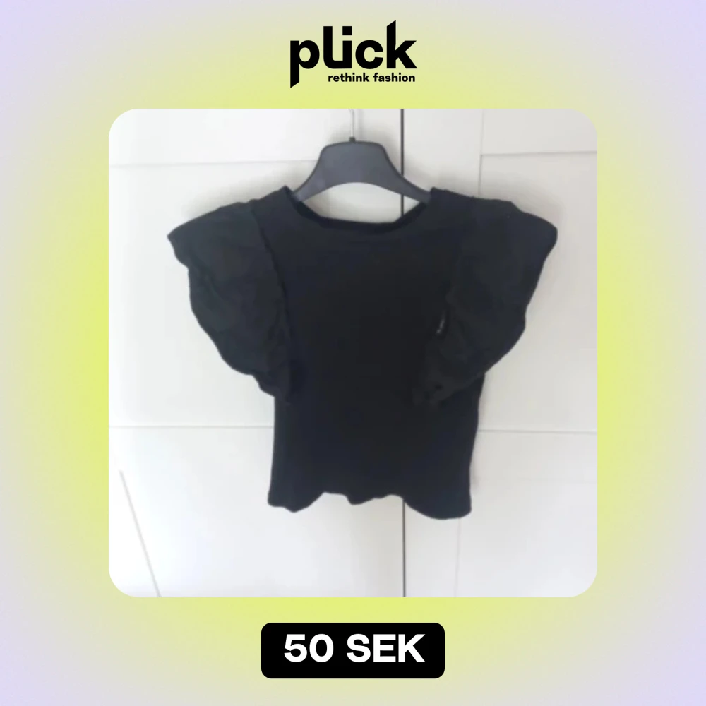 Säljer svart topp med volangärm från kappahl i storlek 146/152 men passar typ som en XXS. Använd 1-2 gånger.