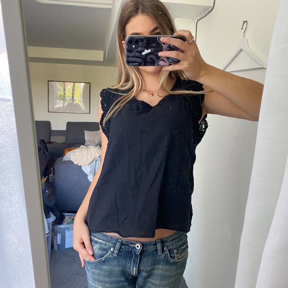 Svart blus med spets