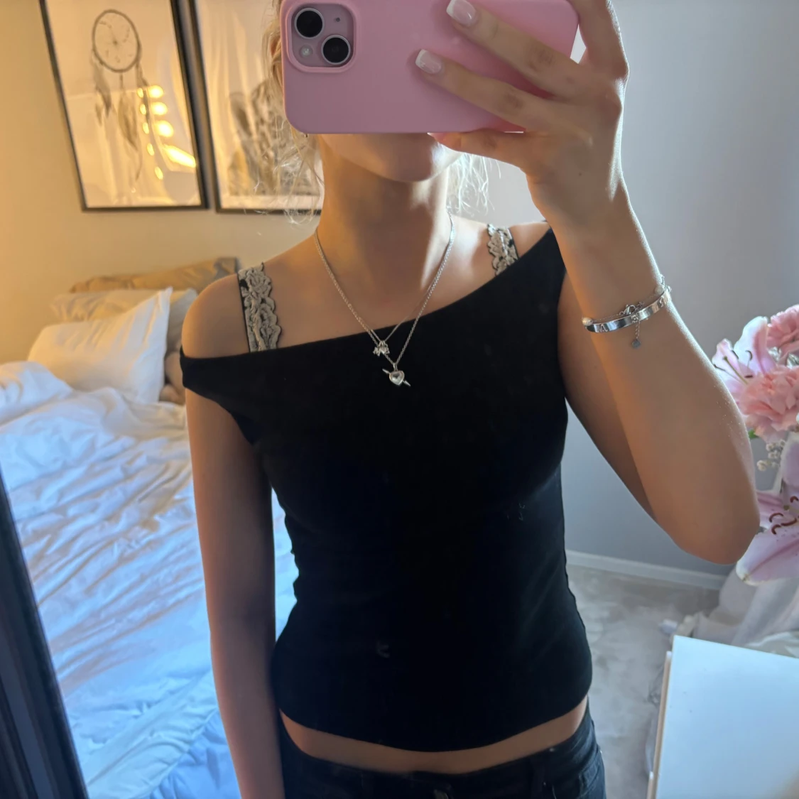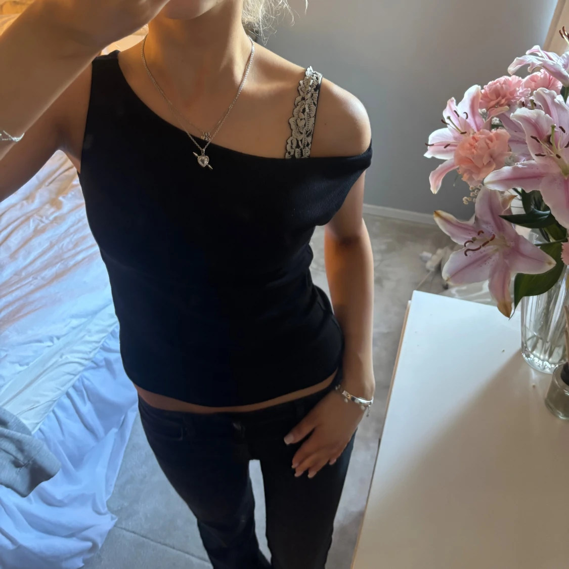Svart asymmetriskt linne som man kan ha på olika sätt! Nästan aldrig använd