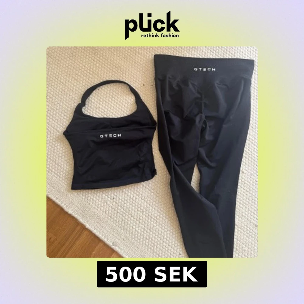 Säljer en svart, tight och ärmlös träningstopp från GTECH och ett par tights med schrunch storlek M på toppen och L i byxorna passar M med