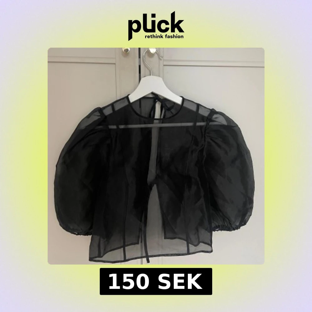 Snygg svart transparent blus med puffiga ärmar och knytning i nacken. Perfekt för en trendig look. Man kan ha ett linne eller topp under blusen eller bara bh 💞