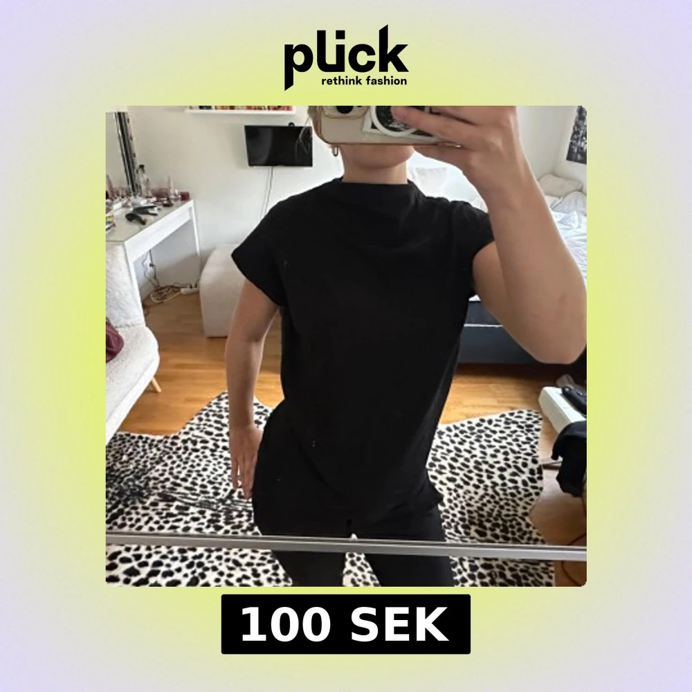 En basic svart T-shirt/topp, passar bÄde till vardag och fest 𩷠endast anvÀnd en gÄng! KÀnns mer som strl M