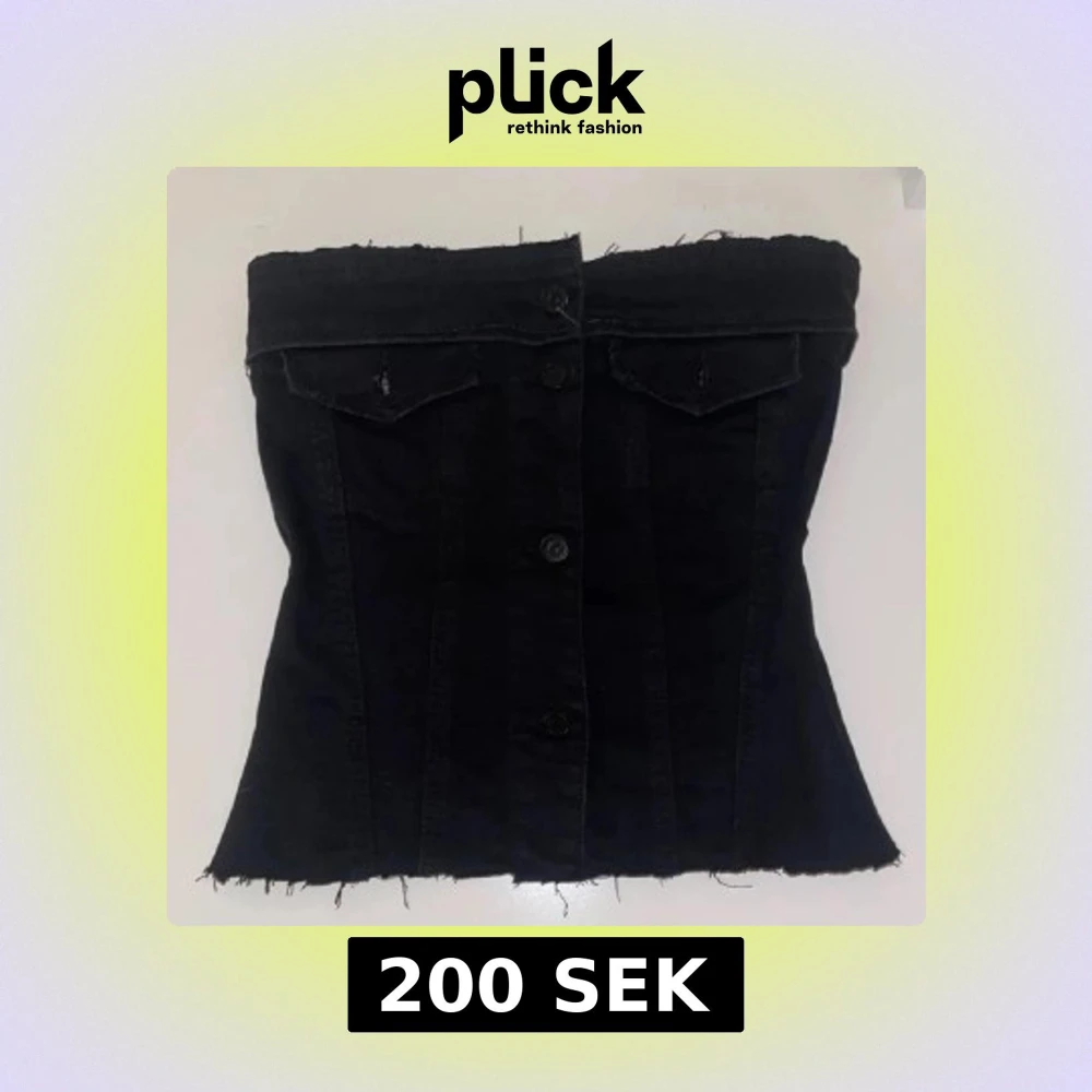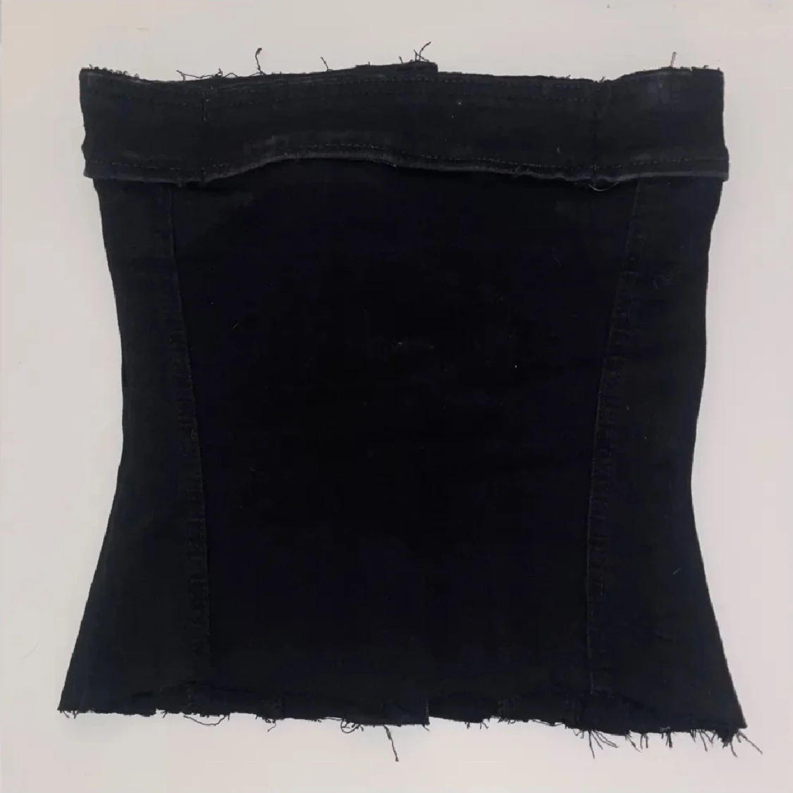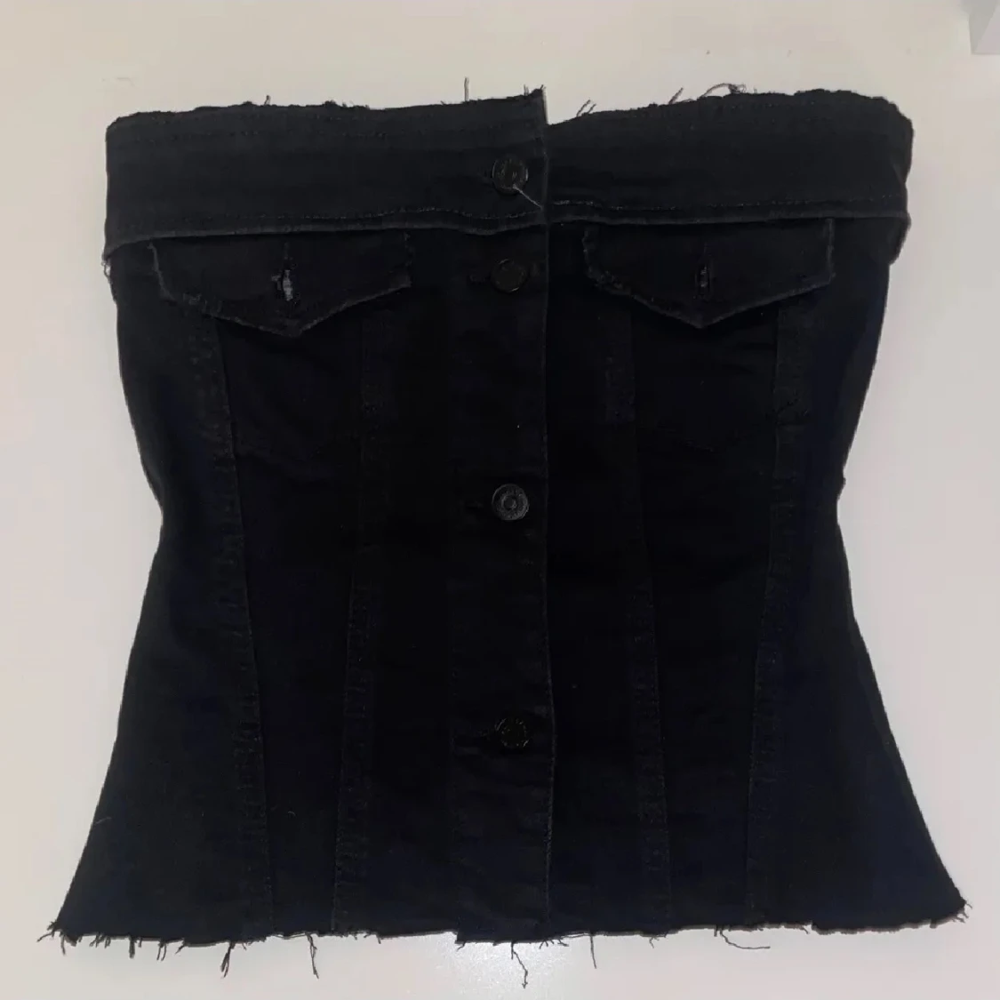 Snygg svart tubtopp i jeansmaterial med knappar framtill. Toppen har en rå kant upptill och nedtill för en trendig look. Perfekt för en cool och avslappnad stil. Sydd sjölv