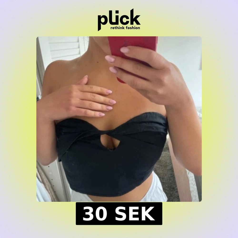 Säljer en svart tubtopp med twistad detalj framtill och liten cut-out under bysten. Toppen är axelbandslös och croppad, perfekt för att styla med höga byxor eller kjol. Använd två gpnger och säljes då jag har växt ut den