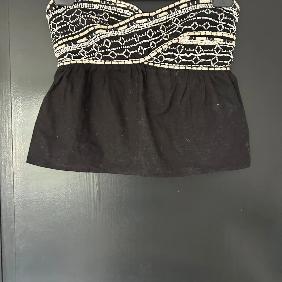Svart tubtopp med pärlmönster från Zara, köpt i Spanien för två år sen och säljs inte längre. Har några få defekter på det mönstrade området (se bild 4&5)💕
