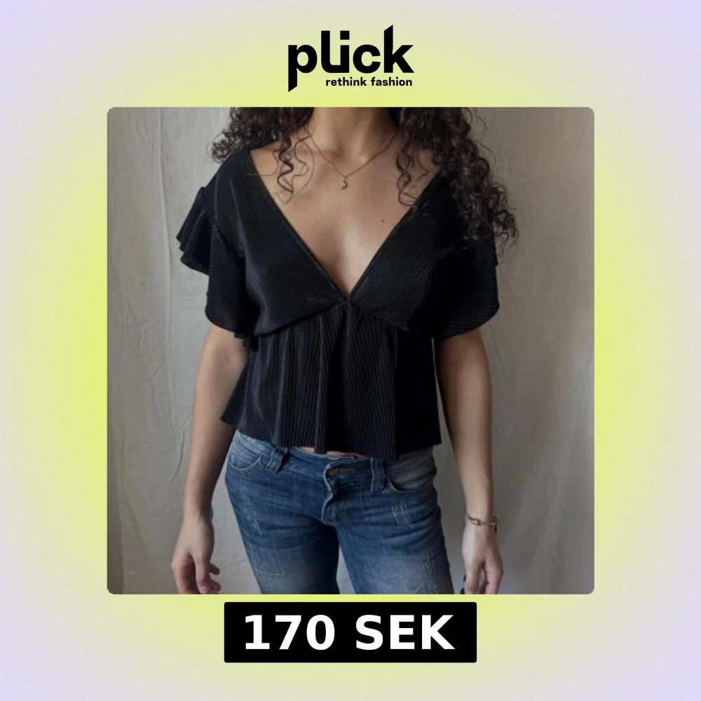 Svart v-ringad blus med volangärmar, även v-ringad i ryggen. Funkar både till fest och till vardags.