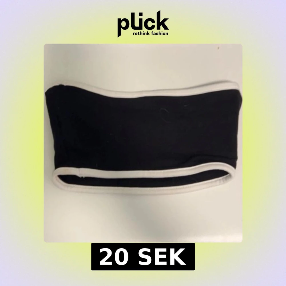Svart & vit tube top med vit kant runtom. Storlek XXS. För liten för mig därav kan ej testa. Men tight passform.