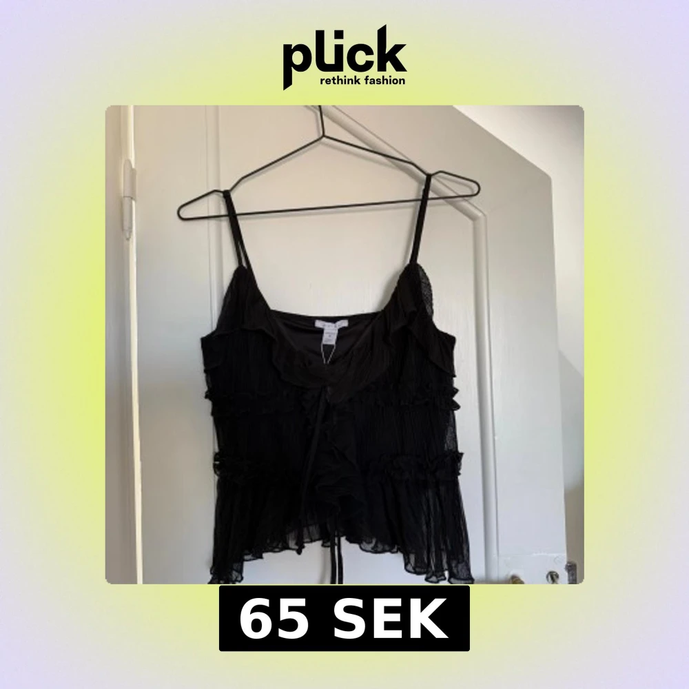 Säljer en svart linnetopp från New Yorker i storlek M som är oanvänd och har lappen kvar. Toppen har tunna axelband, volangdetaljer och knyt framtill. Den är i ett lätt, transparent tyg med plisserad struktur och har en croppad passform. Perfekt till fest eller för dig som gillar romantiska och trendiga detaljer!🥰