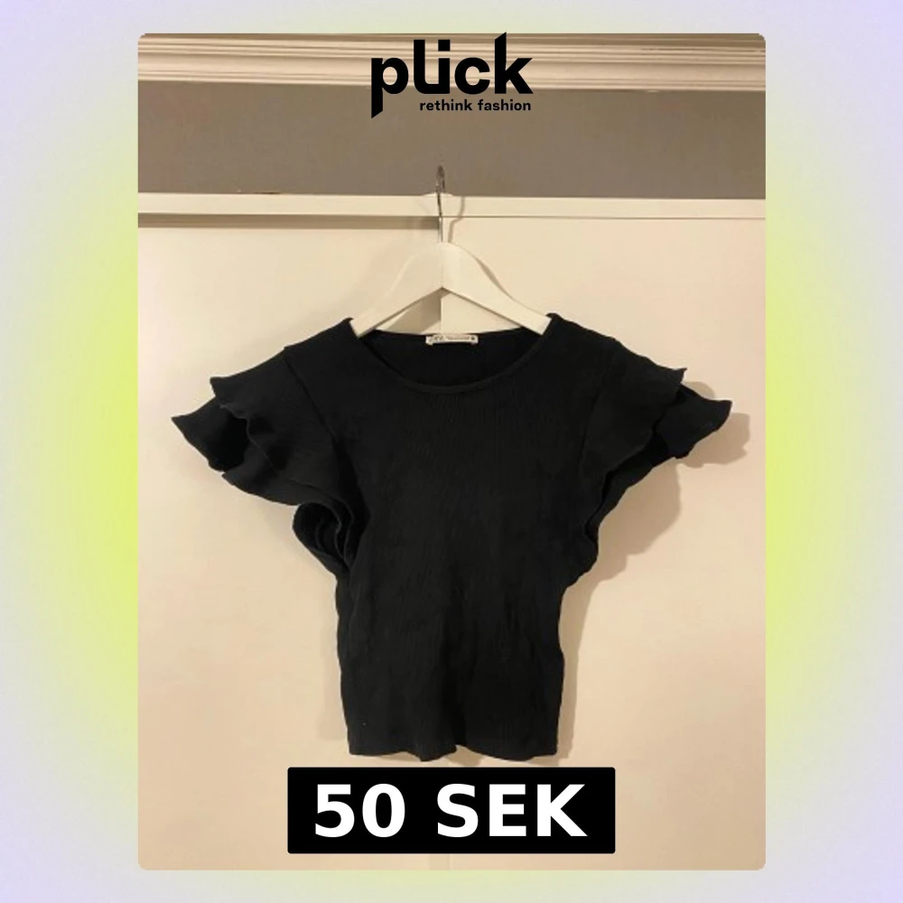 Svart topp från Zara med volangdetaljer på ärmarna. Toppen är ribbad och med rund halsringning. Tajtare men i stretchigt material