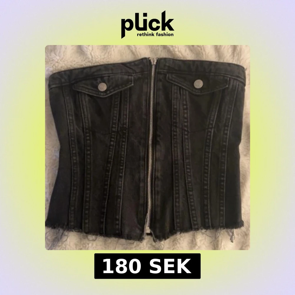 Cool svart korsettopp i jeans från Zara med dragkedja framtill och råa kanter nertill. Toppen har dekorativa sömmar, fickdetaljer med knappar och smockad baksida för extra passform. Perfekt för dig som vill ha en edgy och trendig look. ❤️Dragkedjan e lite trasig men fungerar precis som vandligt ❤️