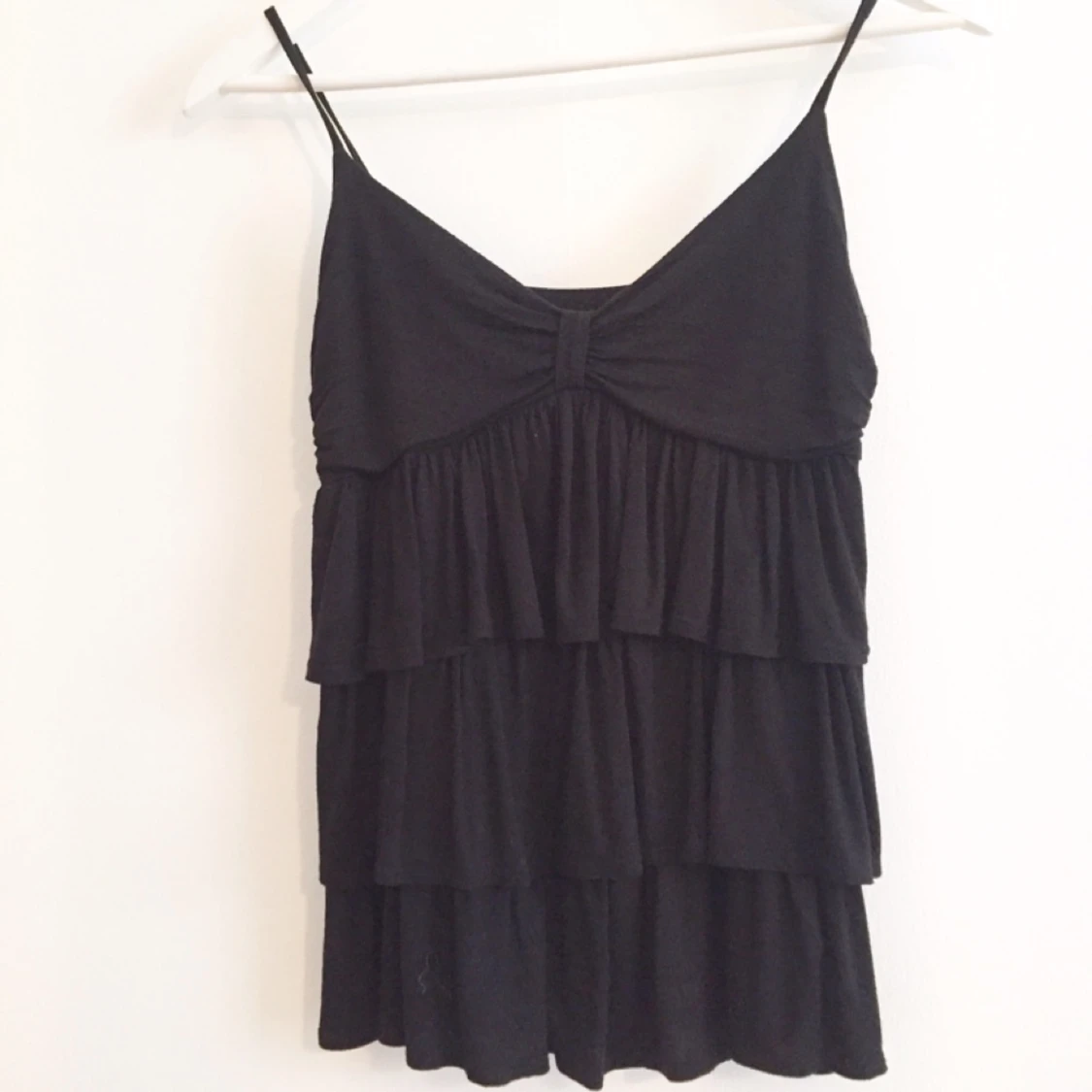 linne vintage Hollister XS - Säljer en mörkgrå linnetopp från Hollister i storlek XS. Toppen har justerbara smala axelband, v-ringad hals med dekorativa knappar framtill och lätt rynkade detaljer vid bysten. Materialet är mjukt och känns som bomull, perfekt för varma dagar.