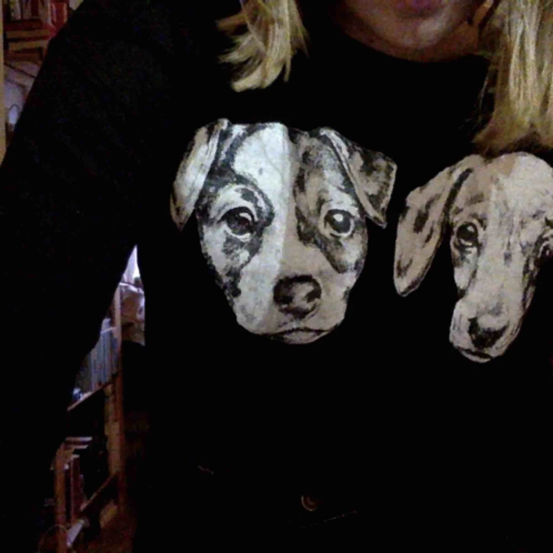 söt svart croptop med två hundar, från monki, storlek S jag är storlek M