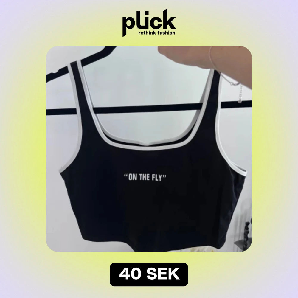 Svart/vitt linne som är lite croppat och har ett tryck på framsidan. Säljer pga att det är lite för stort för mig. Aldrig använt!! 😙 Längd: 41 cm Byst: 82 cm