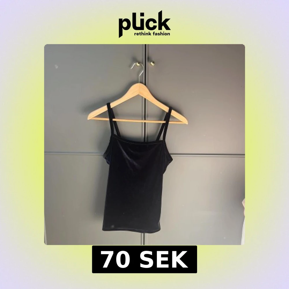 Snygg svart sammetstopp med smala axelband. Perfekt för en stilren look. Toppen är ärmlös och har en mjuk känsla tack vare sammetstyget.💕