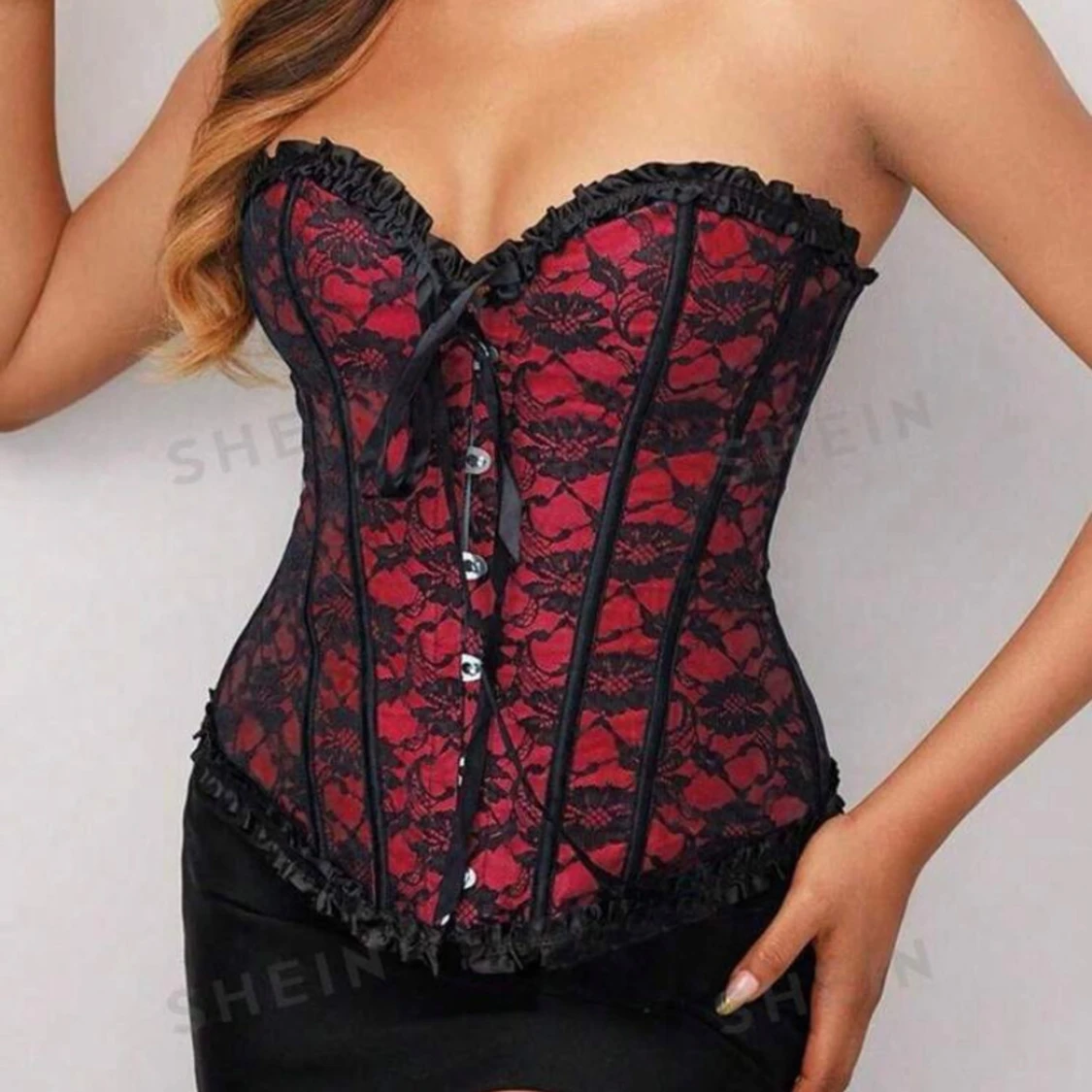 En svartröd korsett, storlek M, aldrig amvänd, perfekt till halloween💋