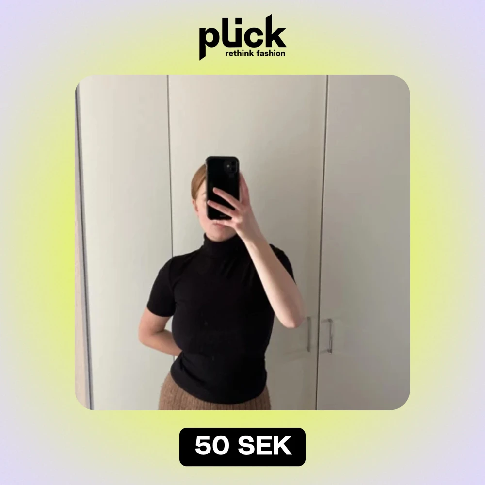 Svart polotröja från Bikbok. Kragen går att rulla, så antingen kan man ha den enda upp till halsen eller vika ner den till önskad längd.