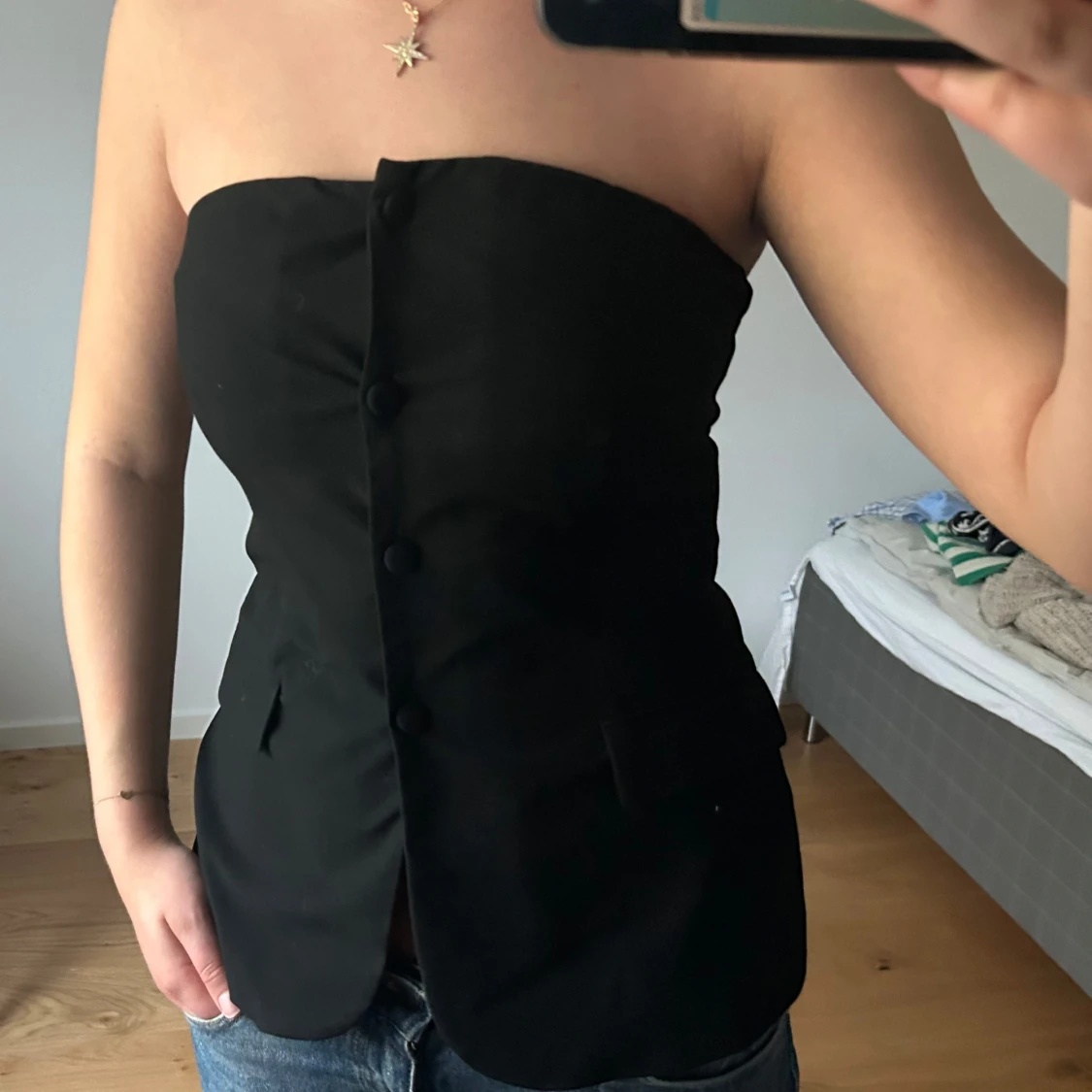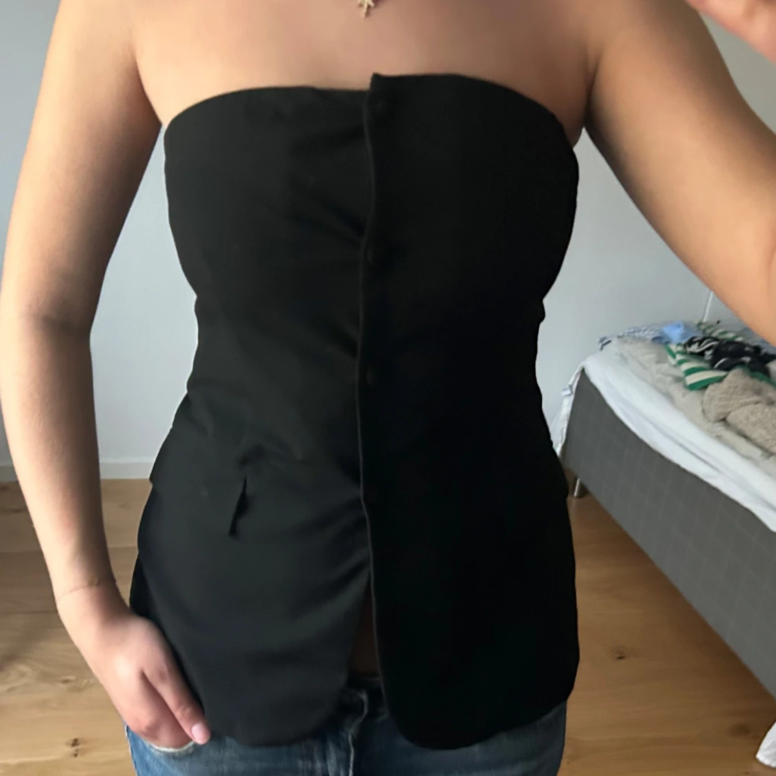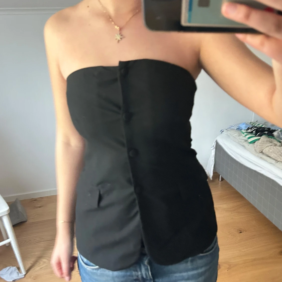 Snygg svart tubtopp med knappar framtill och fickdetaljer. Stilren och enkel design som passar till mycket. Perfekt att styla med jeans eller kjol.