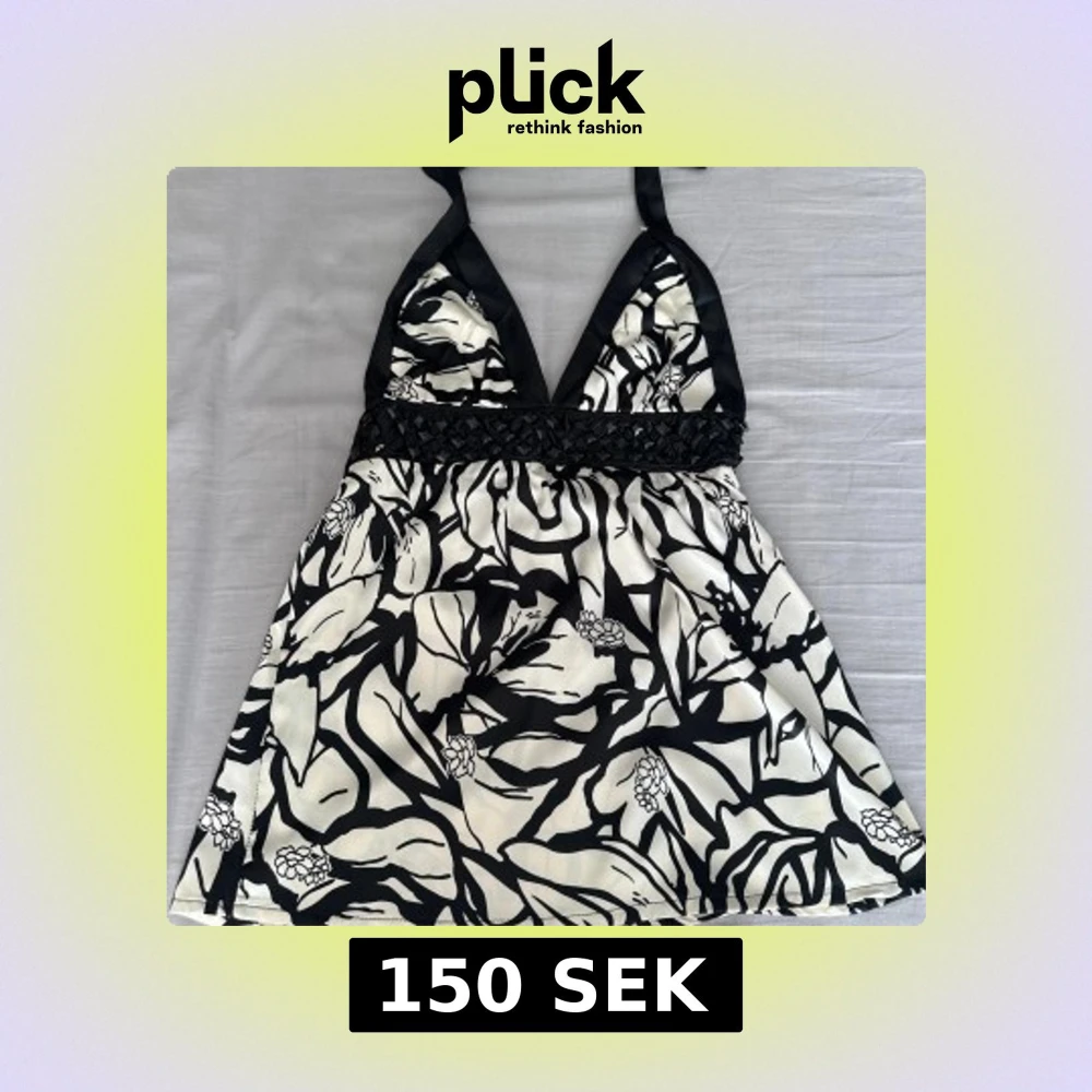 Svartvit halter top med blommönster och paljetter