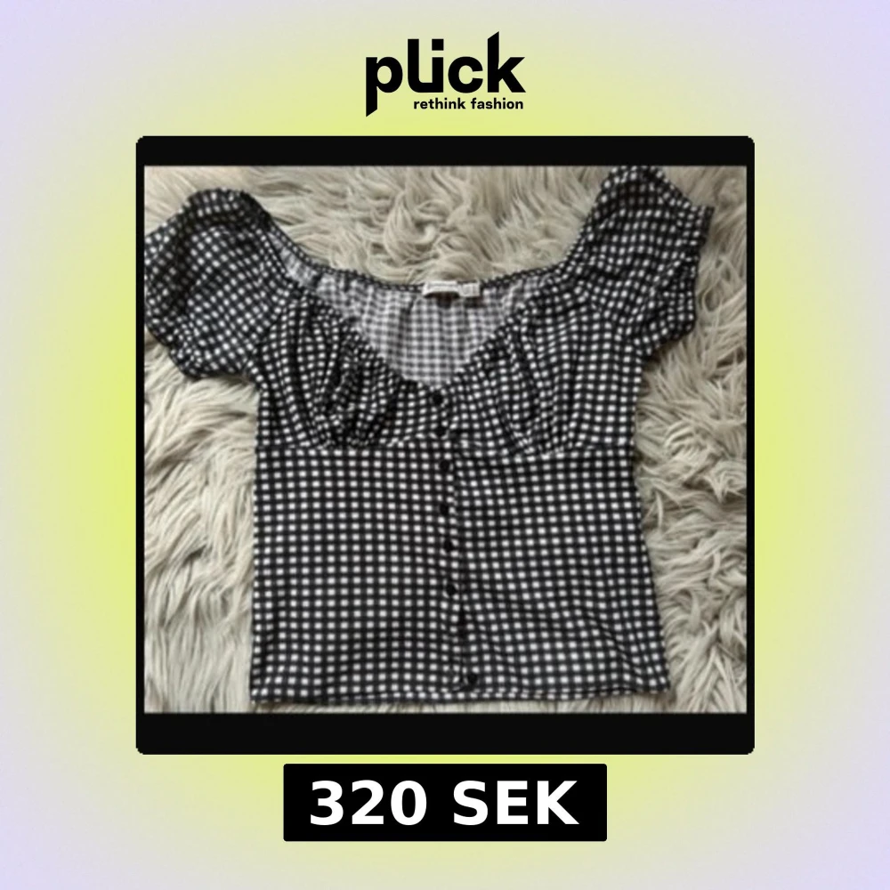 Säljer en söt svartvit rutig blus från stradivarius med korta puffärmar och knappar framtill. Passag inte mig och dårför säljs den!