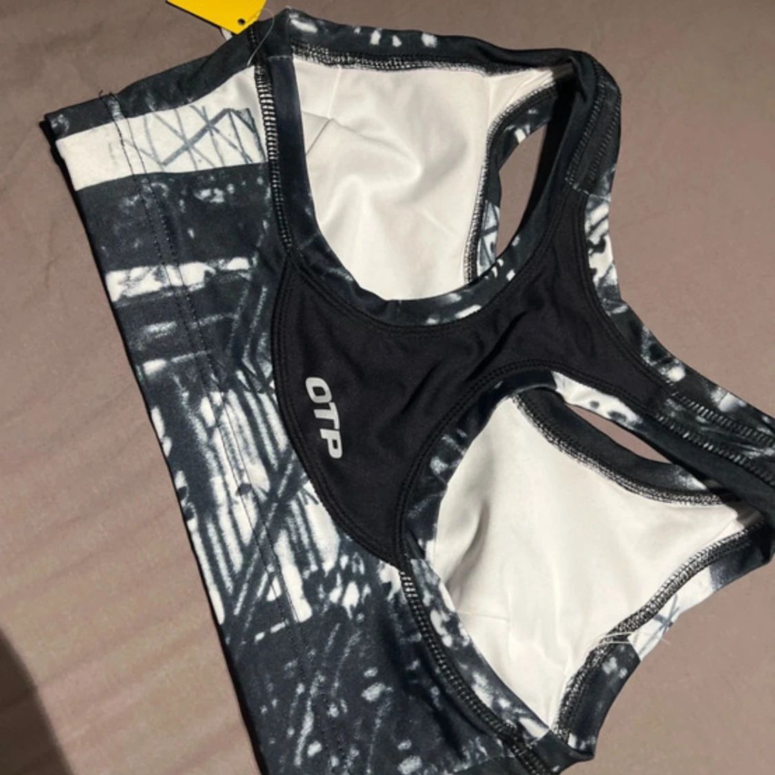Sportig svartvit topp från OTP med coolt abstrakt mönster. Modellen är ärmlös med brottarrygg och har en tight passform som passar perfekt till träning. Tillverkad i stretchigt syntetmaterial för maximal komfort och rörelsefrihet.