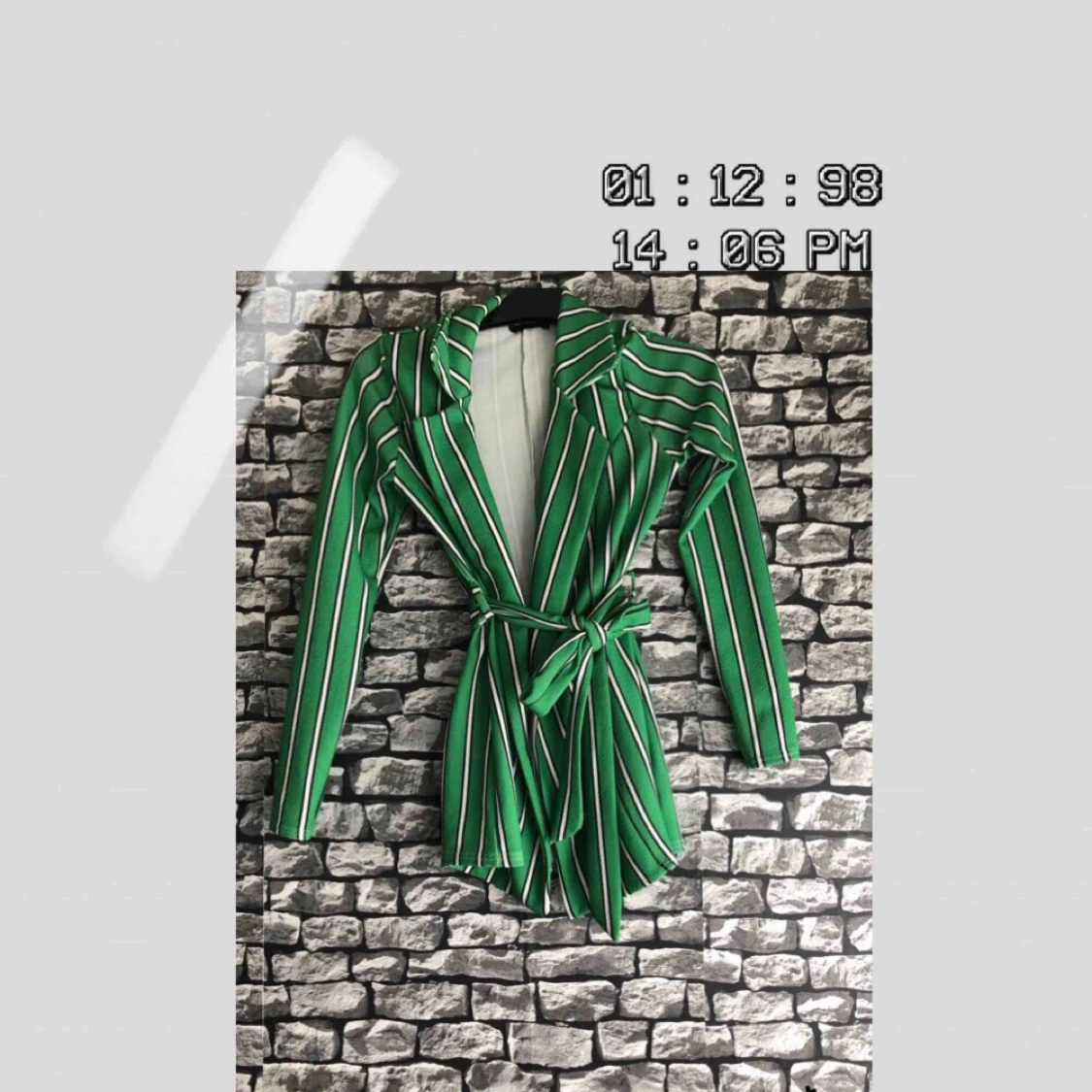 En grön randig tröja/cardigan som går att knyta i storlek 36. Plagget kommer från en online-shopping app, Plick. För fler bilder går det bra att fråga :) Frakten ingår i priset. Kan mötas upp i Göteborg.
