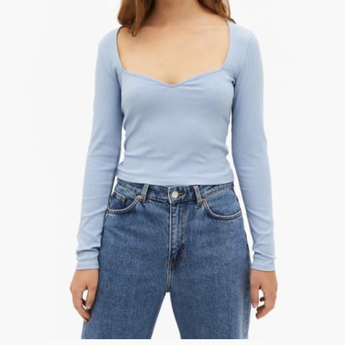 söt ribbad topp med ”sweetheart neckline”. köpt på röda korset men aldrig använd av mig. lite kortare modell men med långa ärmar❣️