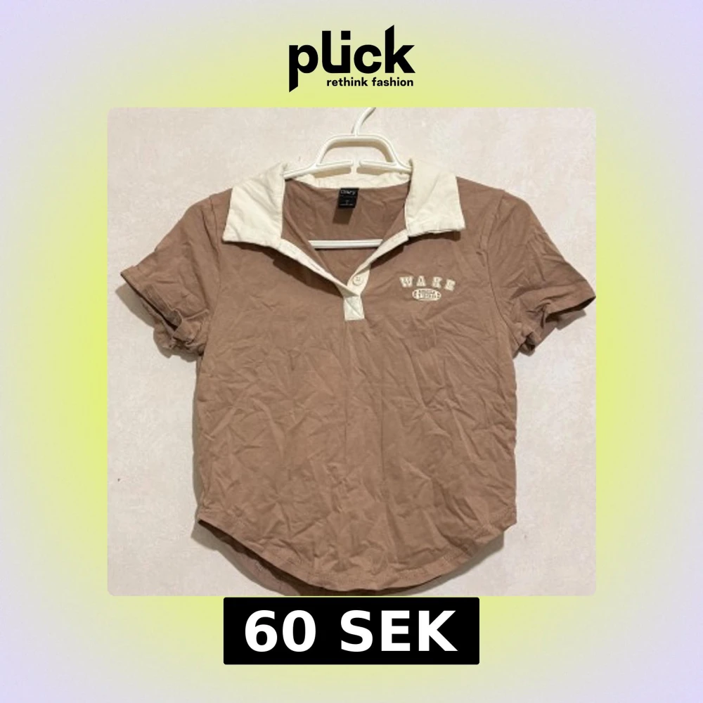 Snygg brun topp från Dazy med kontrasterande vit krage och knappdetalj framtill.