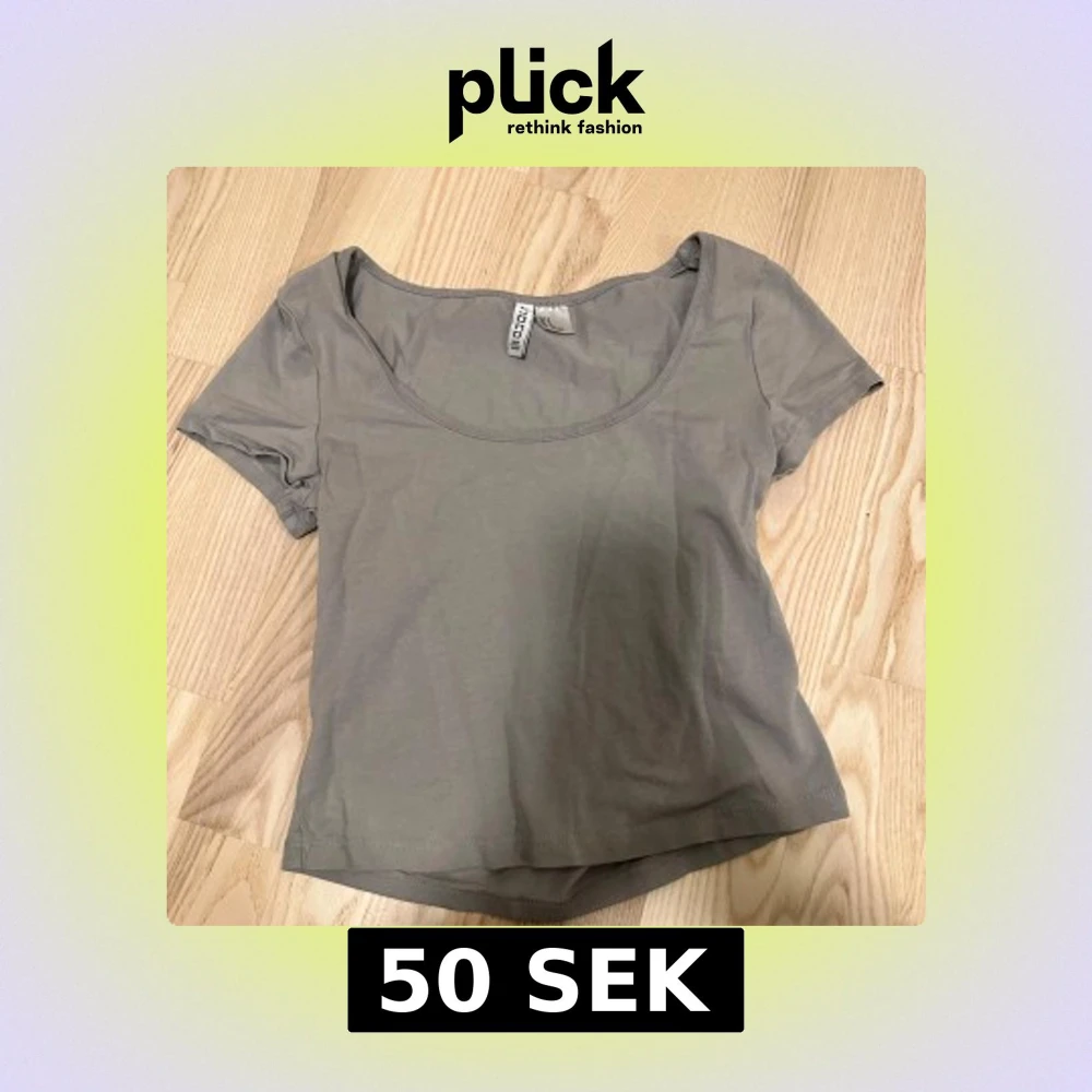 Enkel och stilren grå croppad topp från H&M Divided. Modellen har korta ärmar och en rund, lite djupare urringning. Perfekt att matcha med jeans eller kjol för en clean look. Mjuk och skön bomullskvalitet.
