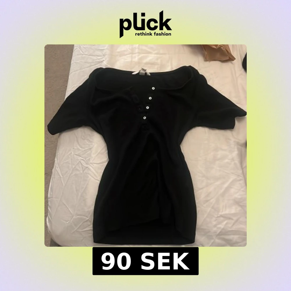 Svart ribbad topp från H&M i storlek S. Toppen har korta ärmar, rundad hals och dekorativa vita knappar framtill. Materialet är mjukt och stretchigt, perfekt för en chill och stilren look.