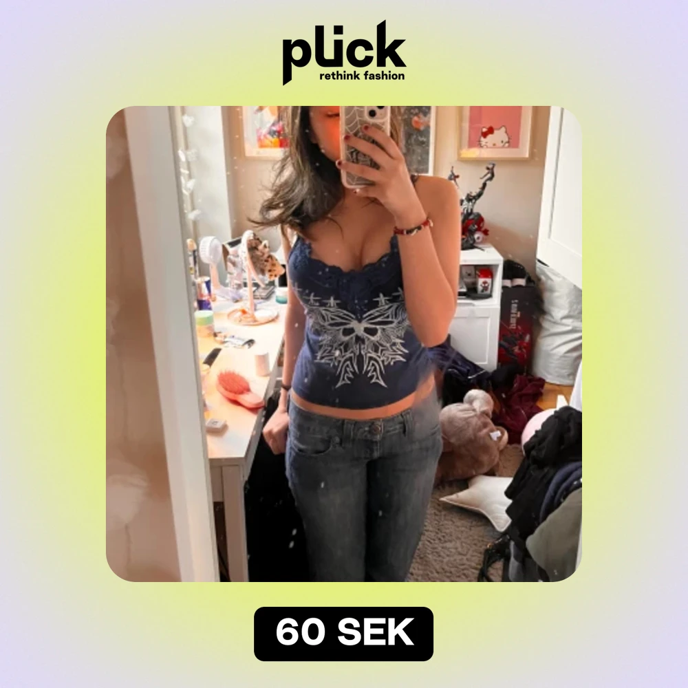 jättesnygg mörkblå tank top med fjäril på 💋 storlek S/XS, helt oanvänd så toppskick!