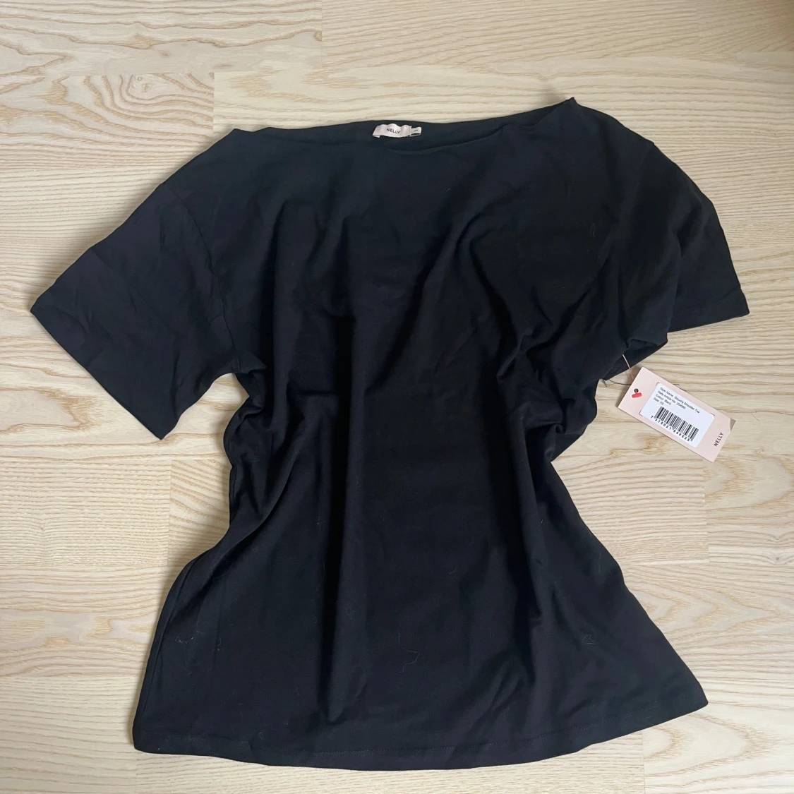 Säljer en svart offshoulder topp från Nelly i modellen Slouchy Shoulder Tee. Toppen har en lös passform, korta ärmar och är tillverkad i mjuk bomull. Perfekt för en chill och stilren look.😊