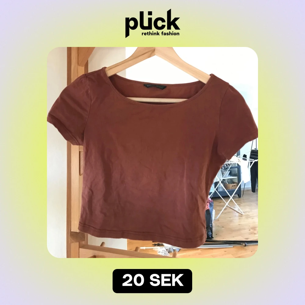 Säljer en snygg brun croppad topp med korta ärmar från shein