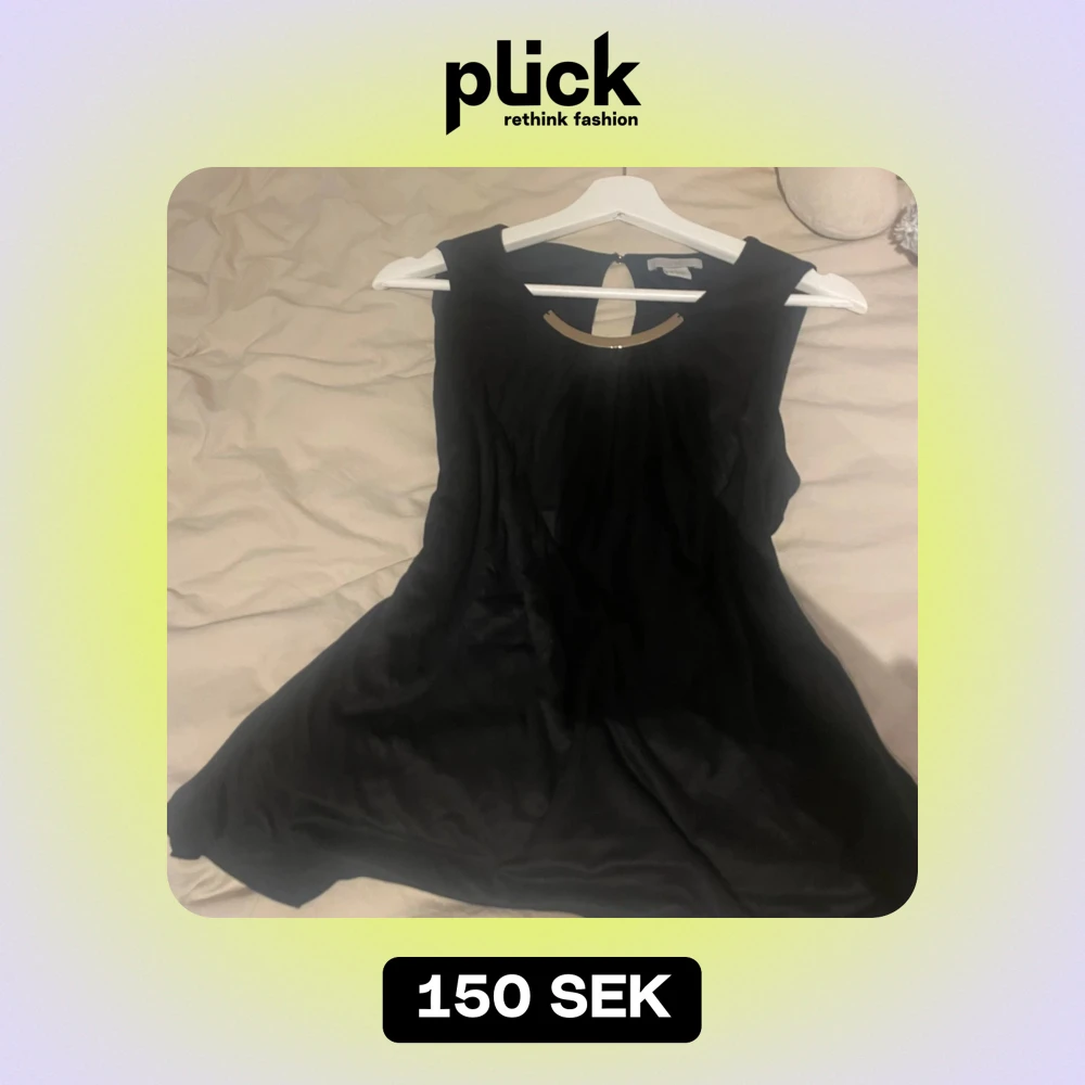 Snygg svart ärmlös topp med en cool metallisk detalj vid halsen. Perfekt för en kväll ute eller en fest. Toppen har en figursydd passform och är gjord i ett mjukt material som faller fint.