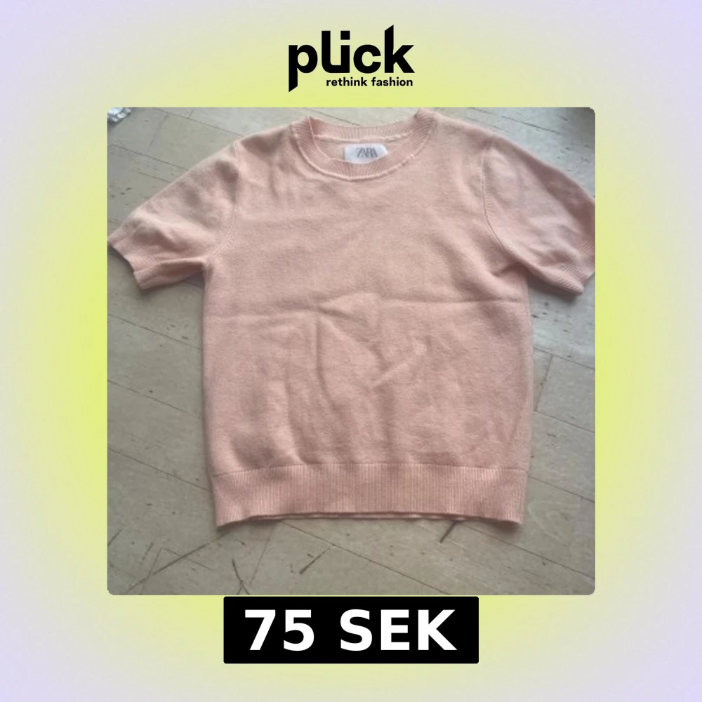 Superfin ljusrosa stickad topp från Zara med korta ärmar och rund halsringning. Mjuk och skön kvalitet, perfekt till jeans eller kjol. Enkel och stilren design som är lätt att matcha.