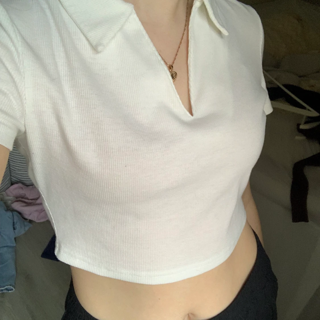 vit croptop med krage från shein. storlek S. är i bra skick då den knappt är använd. köparen står för frakten som ingår i annonspriset (66kr)