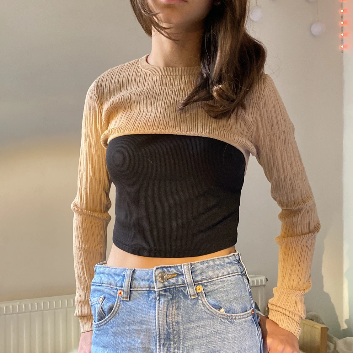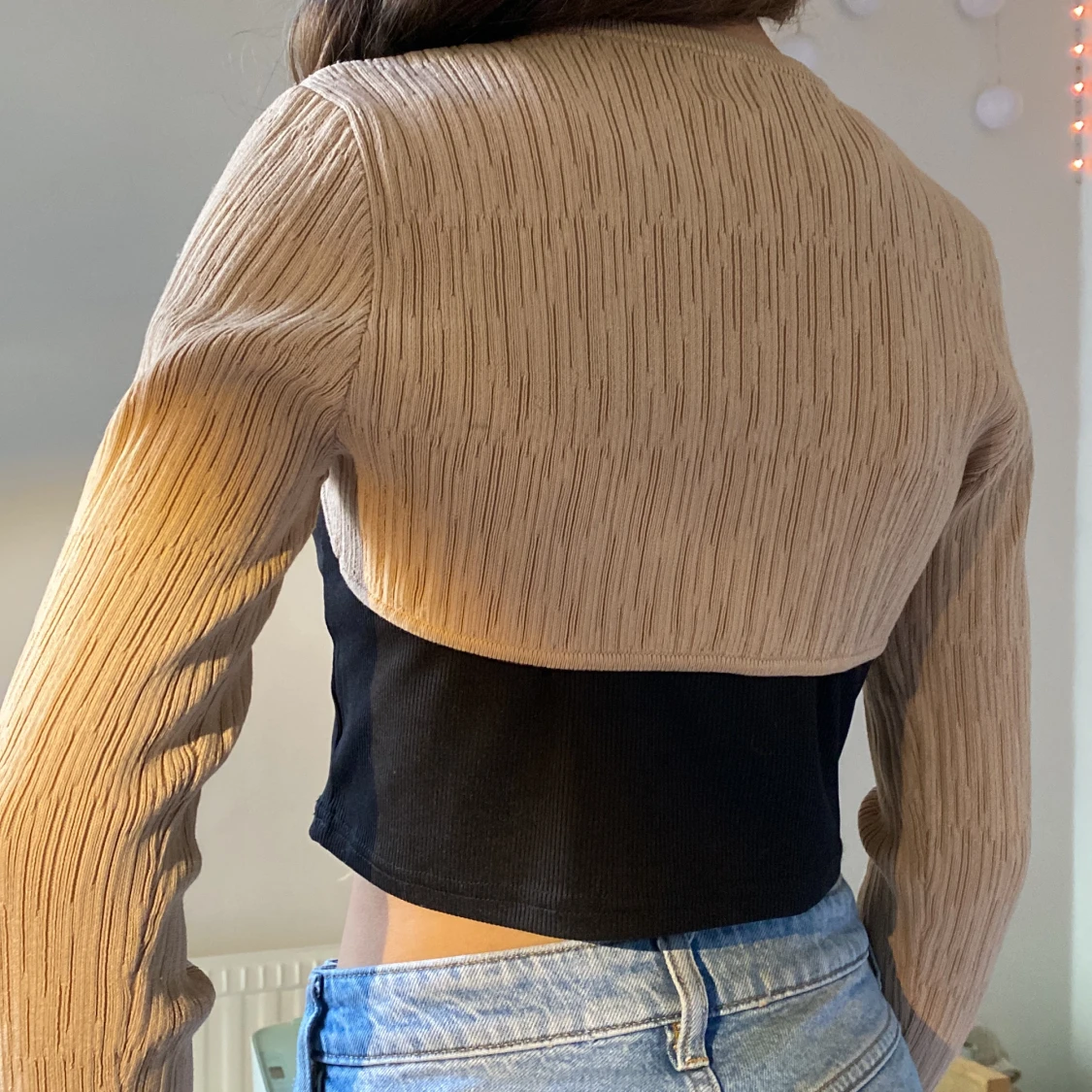 Snygg bolero som passar perfekt med en tight tröja under (den svarta toppen på bilden ingår ej). Helt oanvänd och nyköpt från H&M men armarna var lite för långa för mig