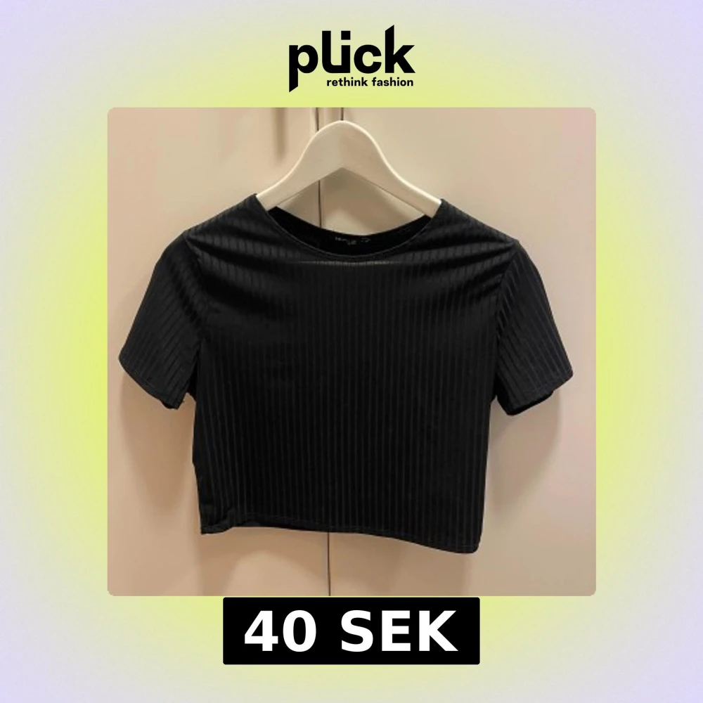 Säljer en svart croppad topp från NLY One. Toppen har korta ärmar och är tillverkad i ett ribbat material som ger en snygg struktur. Perfekt att matcha med höga jeans eller kjol.