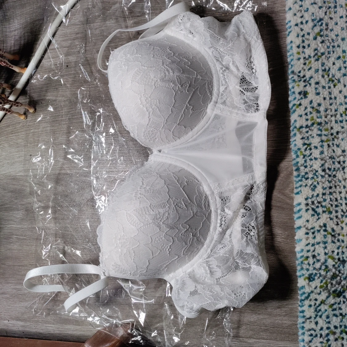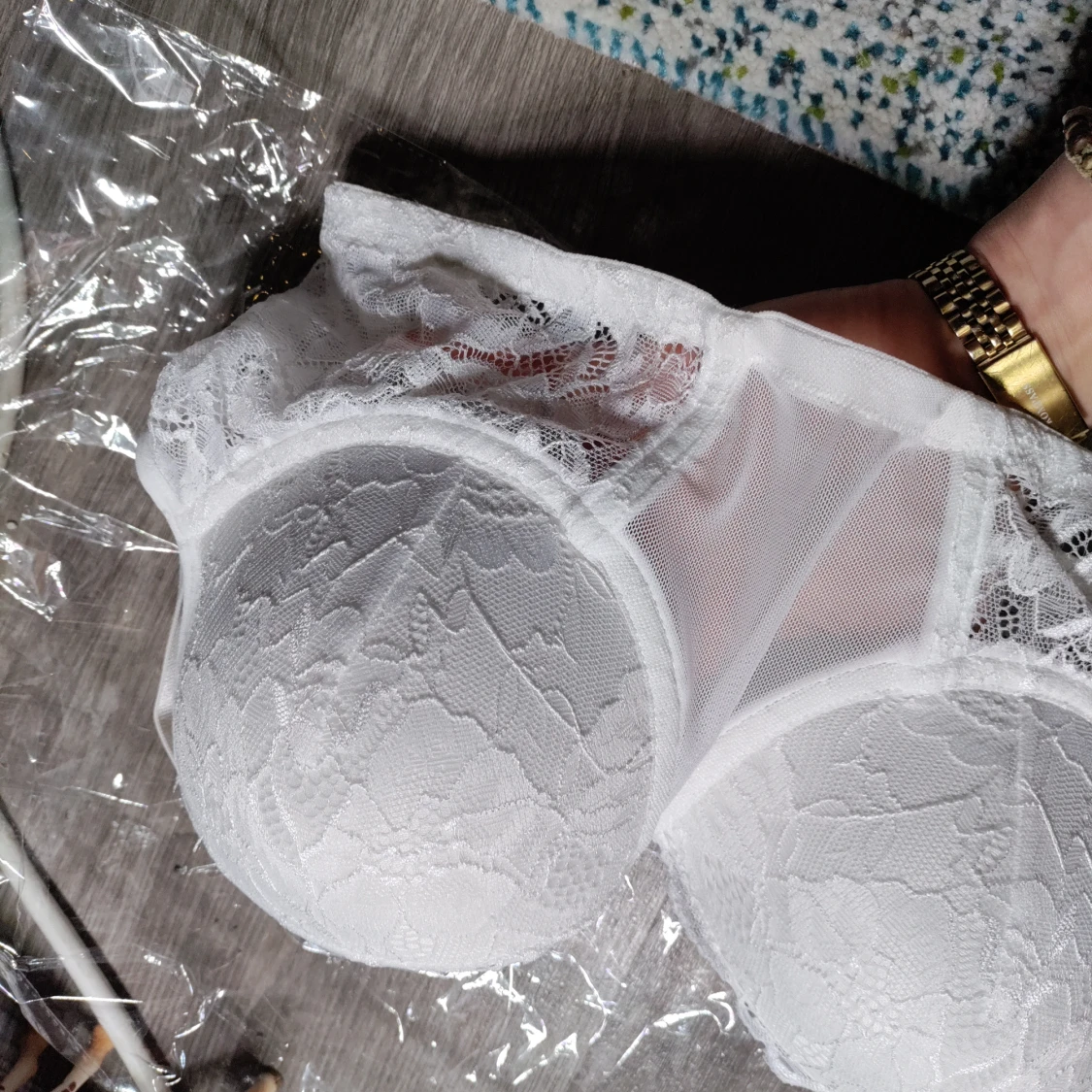 Vit spets bh är helt oanvänd och aldeless för stor. Kan inte bh storlekar men kanske 75-80 C?
