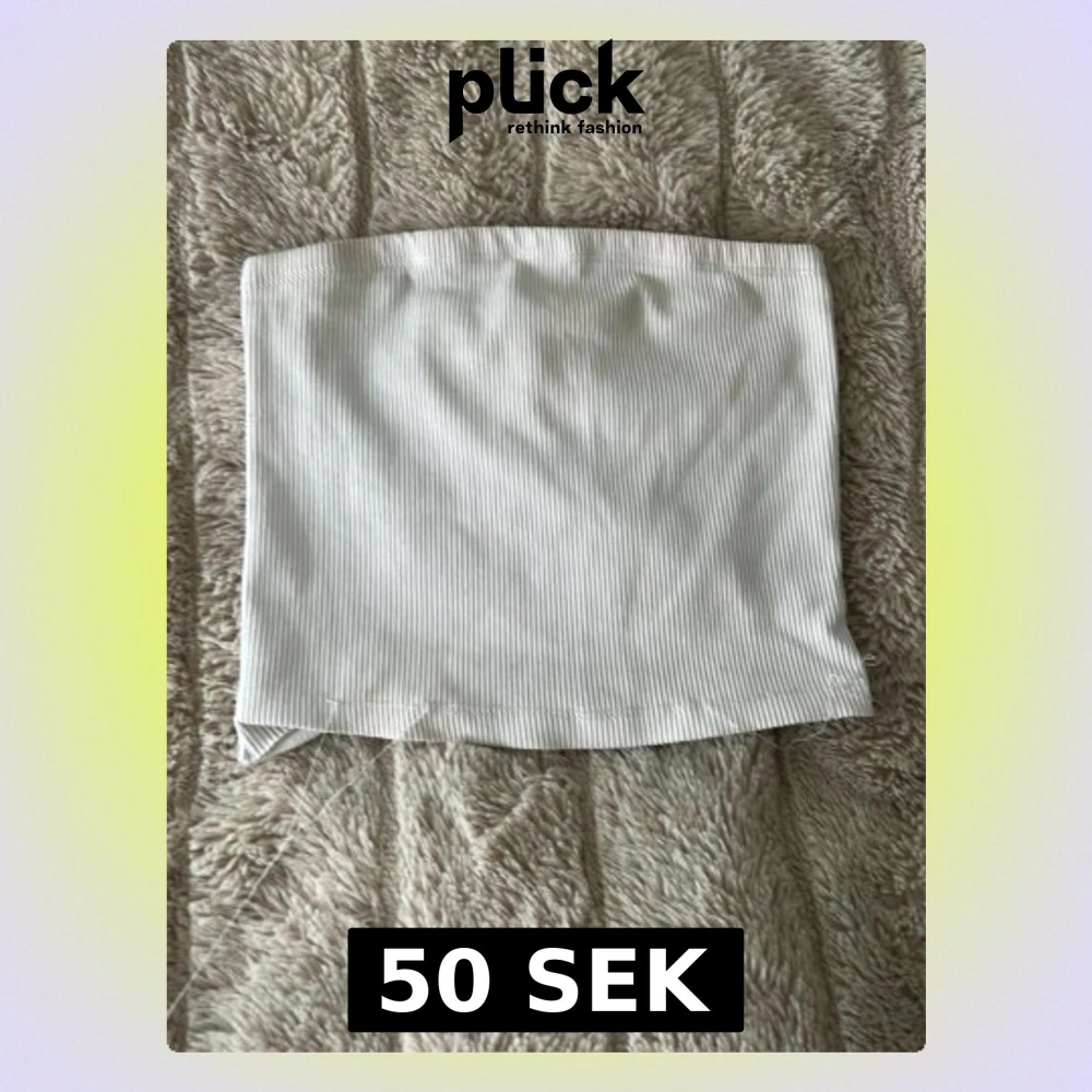 Säljer en vit ribbad bandeau tubtopp från H&M Divided. Fåtal trådar som sticker ut men dom kan man ba klippa av